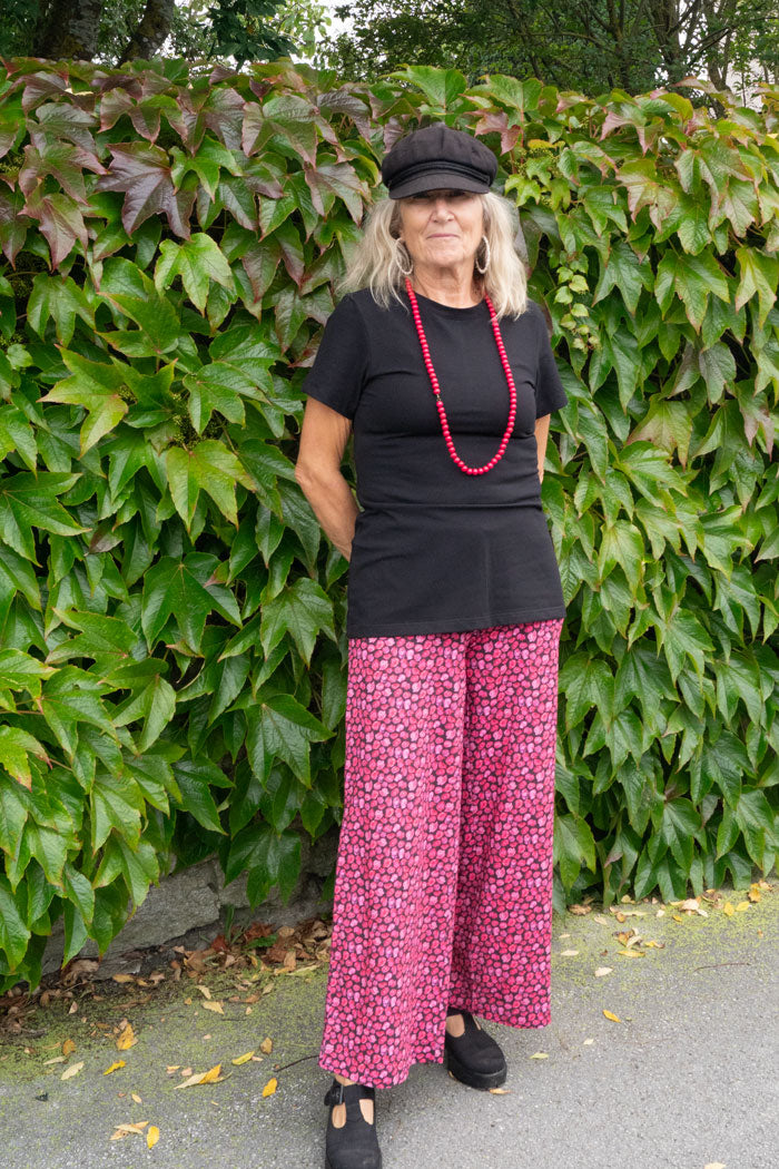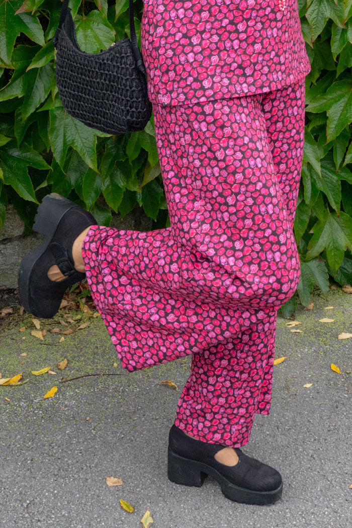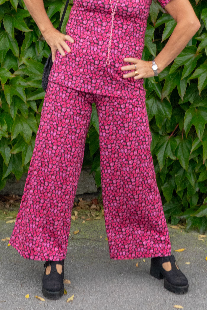 Carin i Razie pink är vida byxor skapade för dig som vill kombinera stil med komfort. Tyget är mjukt, följsamt och ger ett snyggt fall som rör sig fint när du går.
