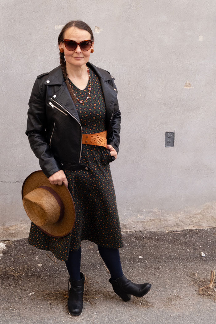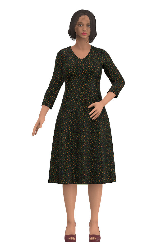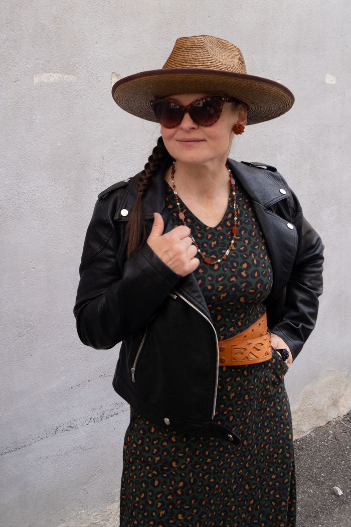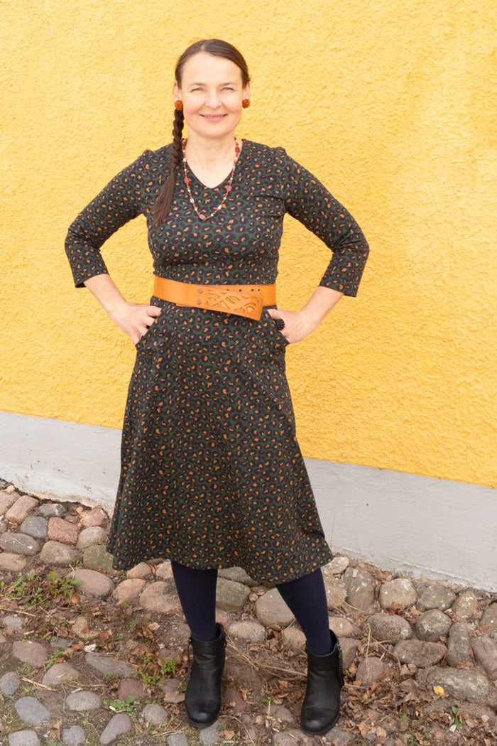 KLÄNNINGEN INGRID I GRÖN LEOPARD TYG - LEOPOLD GREEN