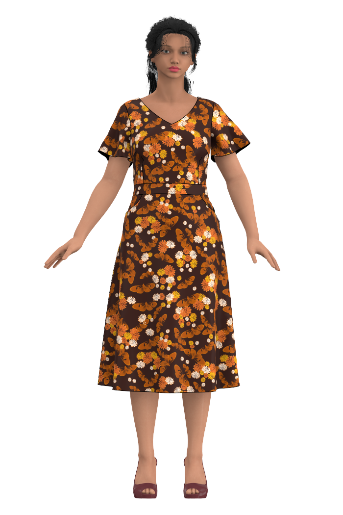 KLÄNNINGEN KERSTIN I FJÄRILSMÖNSTER - BUTTERFLYBLOOM BROWN