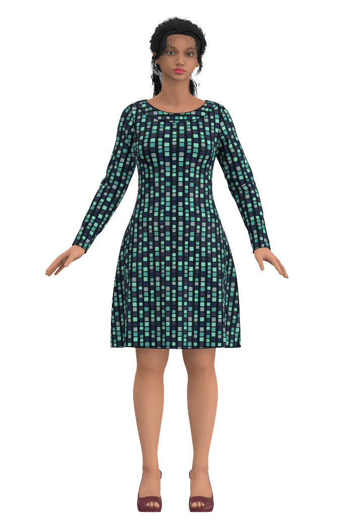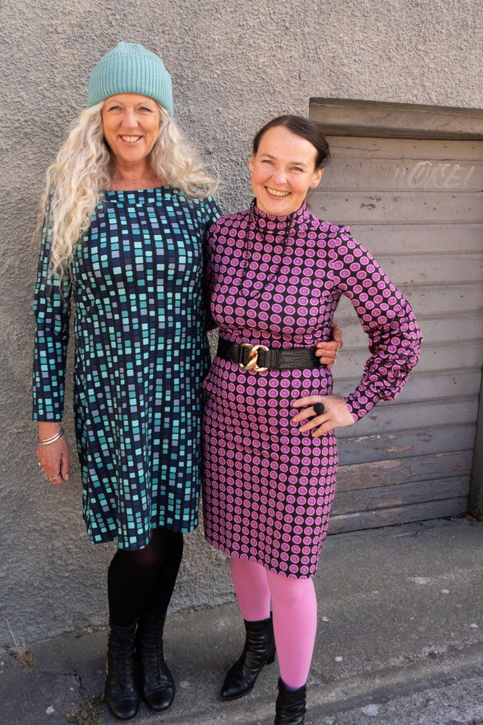 Den klassiska båthalsringningen och de halvlånga ärmarna ger en balanserad siluett, samtidigt som klänningens lediga form ger ett bekvämt och synergi­säkert uttryck. Sara har en lätt utsvängd kjoldel som skapar ett fint fall och ger rörelse vid varje steg.
