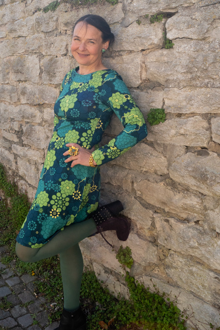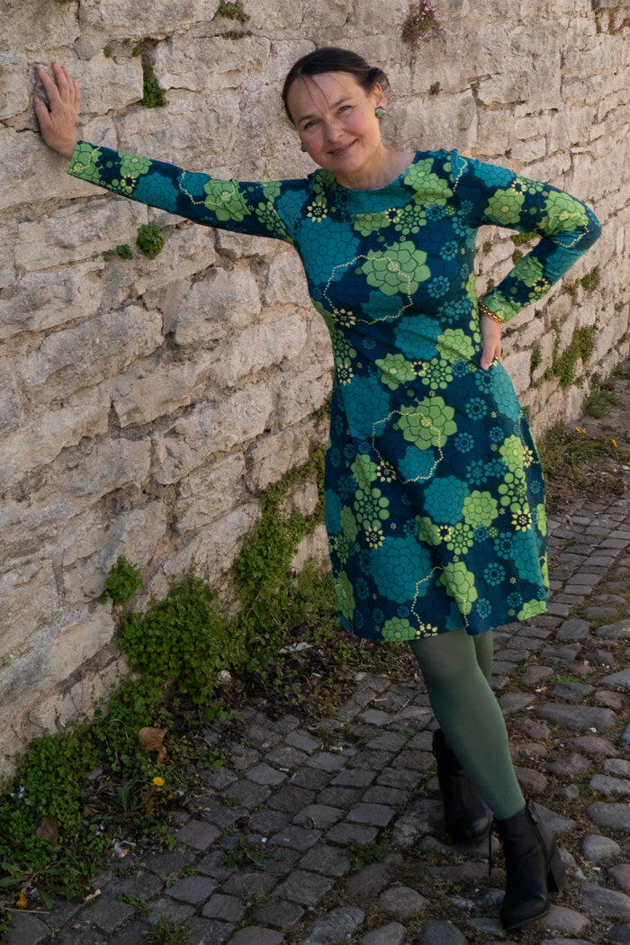 Den klassiska designen med rund halsringning och lätt vid kjol gör Sara Hammock Turkos till ett tidlöst och mångsidigt slow‑fashion‑plagg. Klänningen är producerad lokalt i Visby och passar perfekt för vardag eller festliga tillfällen, och kan enkelt kombineras med boots, sneakers eller strumpbyxor beroende på säsong.