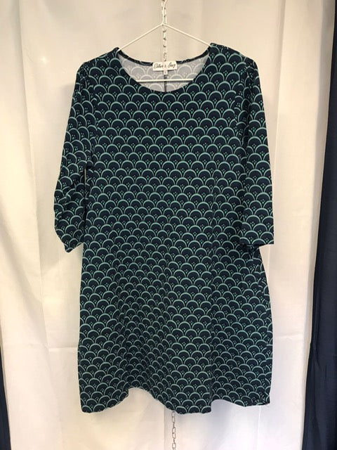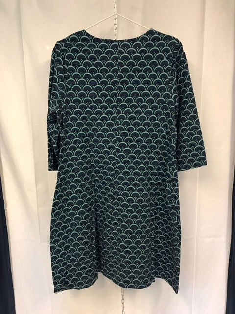 Klänning Bardot slutar på nedre delen av låret och halsringningen är rundad. Längden gör att den funkar lika bra barbent som med strumpbyxor och leggings. Och på vintern hur bra som helst ihop med jeans! Kjoldelen är ganska så rak och passformen är tajt över byst och arm för att sen släppa och bli lite lösare över mage och rumpa. Halsringningen är rundad som ligger på lagom avstånd från halsen utan att ligga på men ändå få en fin form.