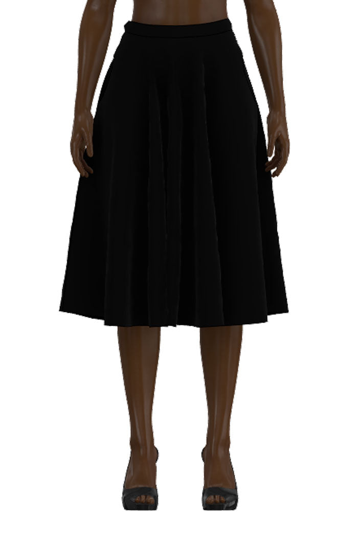 Kjol Cilla har en tight passform upptill med resår i midjan och släpper sen ledigt över benen med en klockad kjol. Med en kjollängd som slutar på nedre delen av vaden och med fickor fram, så är hon ett klassiskt inslag i din garderob. Hennes midja går till ovan navel ungefär, men kan ju placeras precis hur du själv vill. Fickorna är rymliga och har en lite dold ficköppning i sidsömmen.