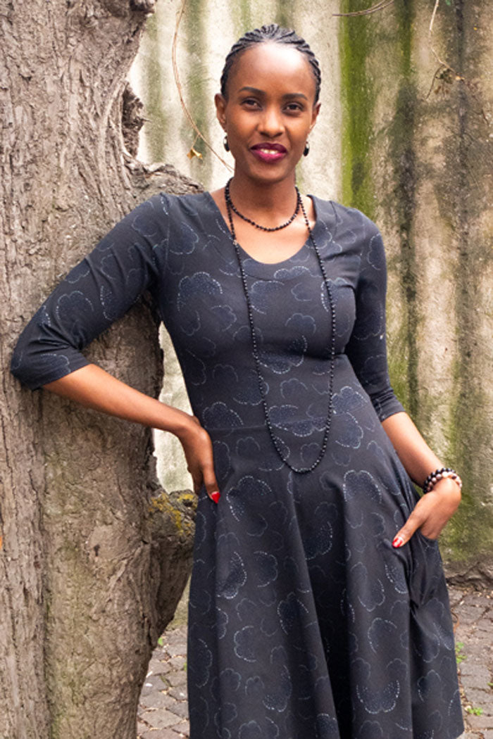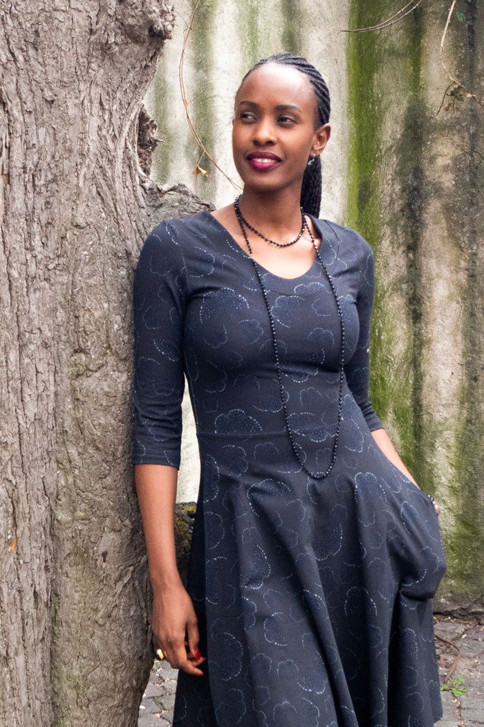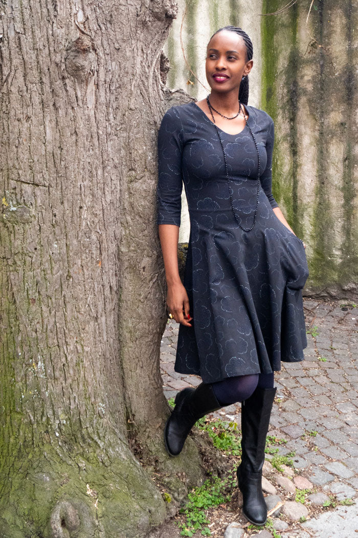 Das Kleid Stina mit 3/4-Ärmeln ist eines unserer Lieblingsstücke. Es ist ein wunderschönes Kleid mit einem figurbetonten Oberteil und einem weiten, schön fallenden Rockteil. Es hat außerdem praktische und geräumige Taschen für die Hände. Dank des elastischen Bio-Baumwolljerseys liegt es angenehm am Körper. Ideal für den Alltag und für Partys!
