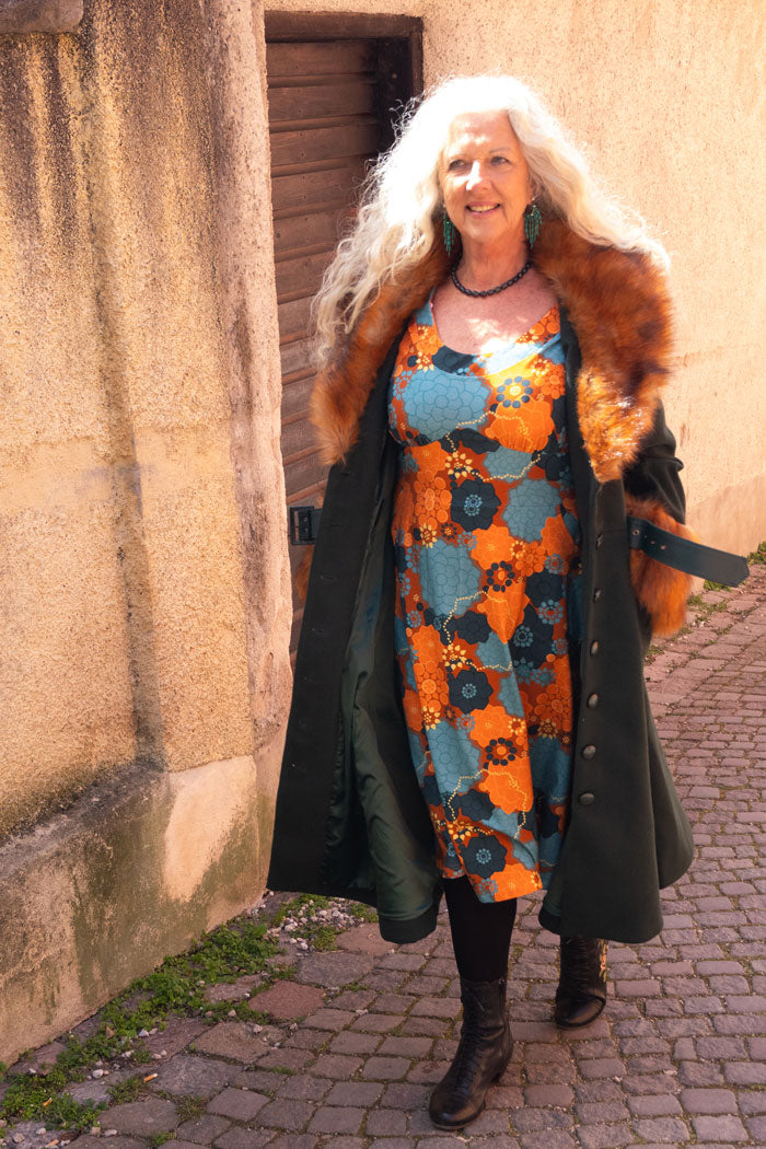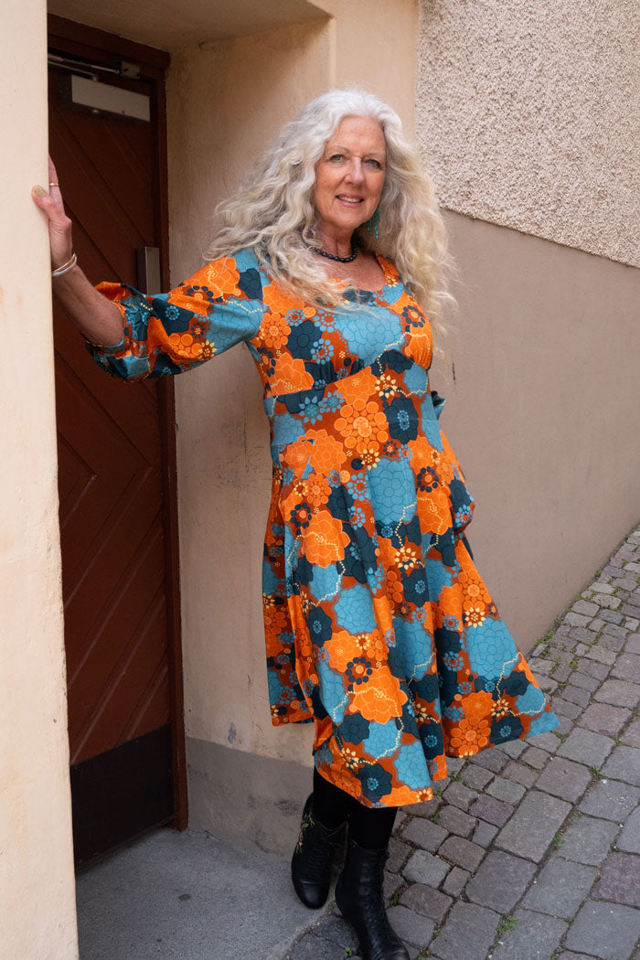 Das Kleid Asta mit 3/4-Ärmeln ist ein wunderschönes Kleid mit figurbetontem Oberteil, formgebenden Ärmeln, hübschen Raffungen am Dekolleté, einem weiten Rock und einem eleganten Fall. Es verfügt außerdem über praktische, geräumige Taschen. Dank des elastischen Bio-Baumwolljerseys sitzt es angenehm und ist sowohl für den Alltag als auch für festliche Anlässe geeignet.