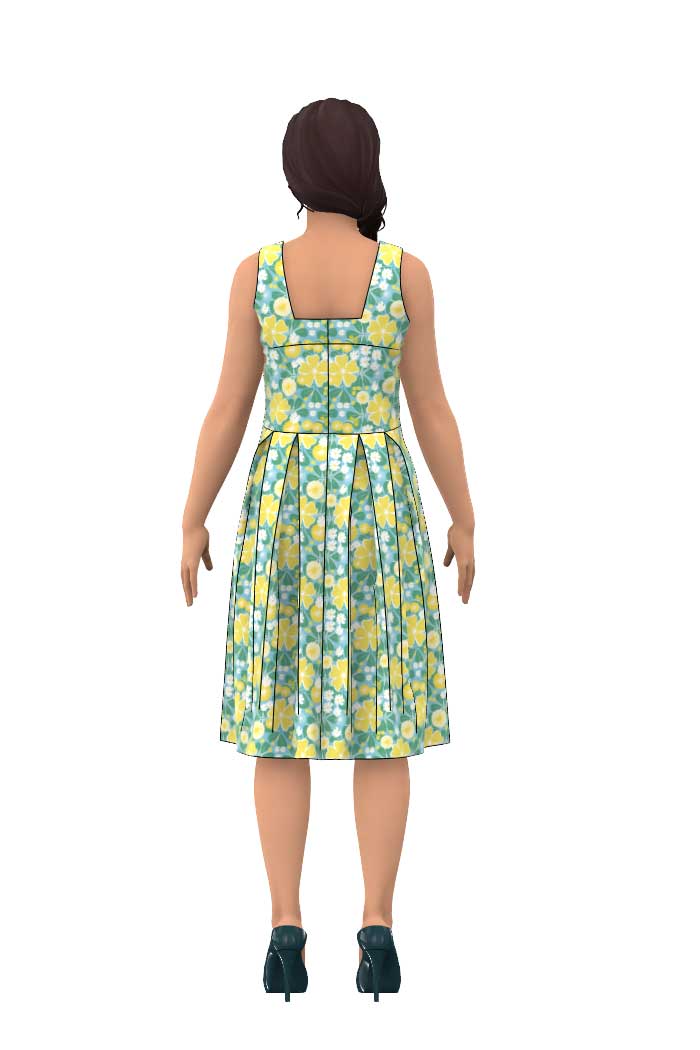 Klänning Gerda är en riktig pärla i vår kollektion, den har en djup urringning både fram och bak som passar bra med en balconette-bh och snygga halsband. Bystinsnitt för att optimera passformen och praktiska fickor fram som döljs lite av de lagda vecken. Längden går till vaden och passformen i klänningen är tight upptill och med lösare kjolpassform. Kjoldelen är rak från midjan och ner, med lagda veck. Just denna Gerda är ärmlös men modellen finns även med trekvartsärm.