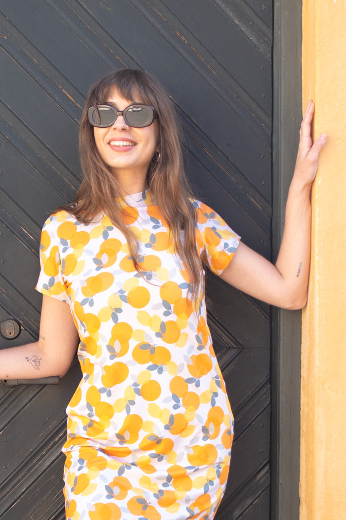 The Fanny t-shirt dress is our classic women's t-shirt dress with a body-hugging fit that is available in sizes XS-3XL.