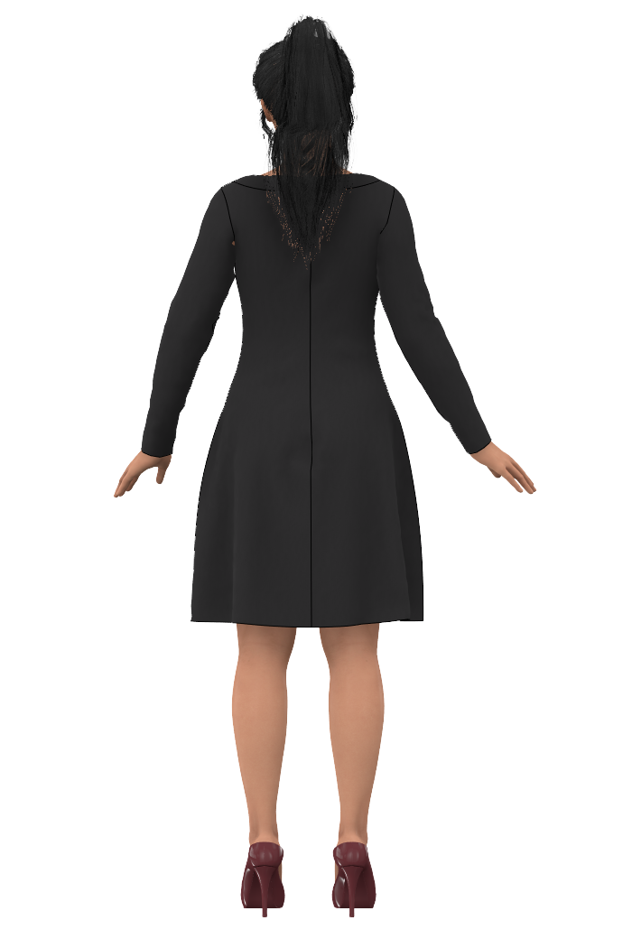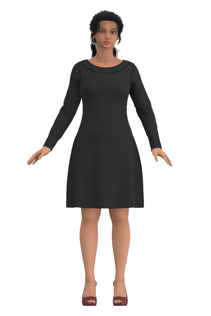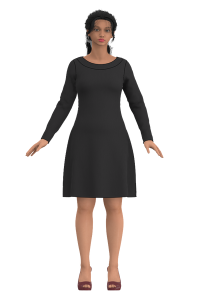 Dress Sara ends just above the knee and the boat neck collar is reverse sewn. The length means that it works just as well barefoot as with tights and leggings. And in the winter as good as any with jeans! The skirt part is slightly exposed for a nice fall and the fit is tight over the bust and arms and then loosens and becomes looser over the stomach and bum. The neckline is a classic boat neck that is at a reasonable distance from the neck without lying on it, but still covers the bra straps. Sara Högblom has done our garment design and fit.