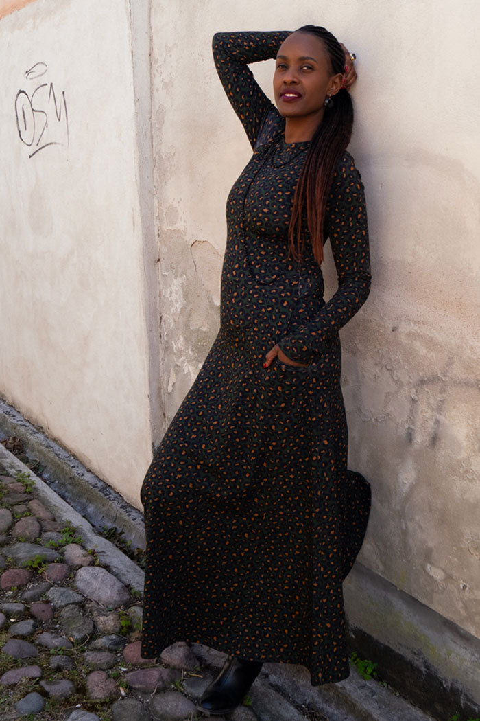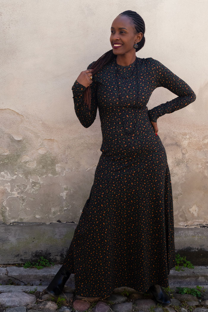 Klänning Beatrice i grönt leopardtyg - Leopold green