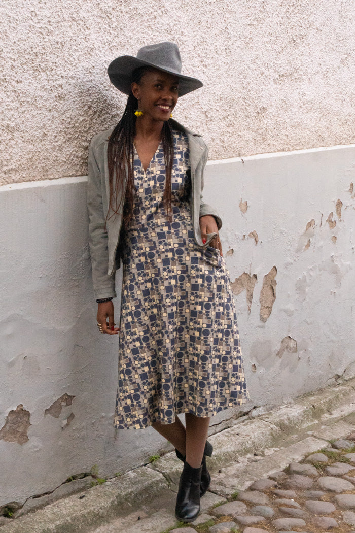 KLÄNNINGEN ELSA I GRÅBLÅA TONER - BAATH BEIGE