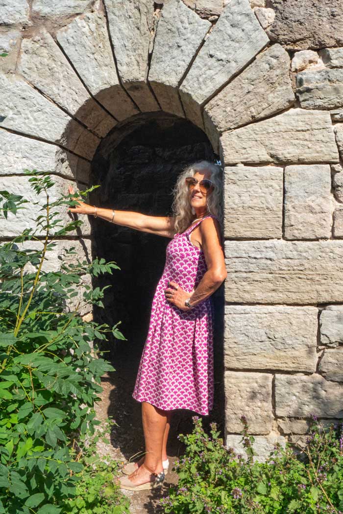 Klänningen är designad och inspirerad av vår grundares morfars mor, Gerda, som gärna bar dessa klassiska sommarklänningar med rak kjol, lagda veck och markerad midja på varma sommardagar hemma på gården utanför Enköping.