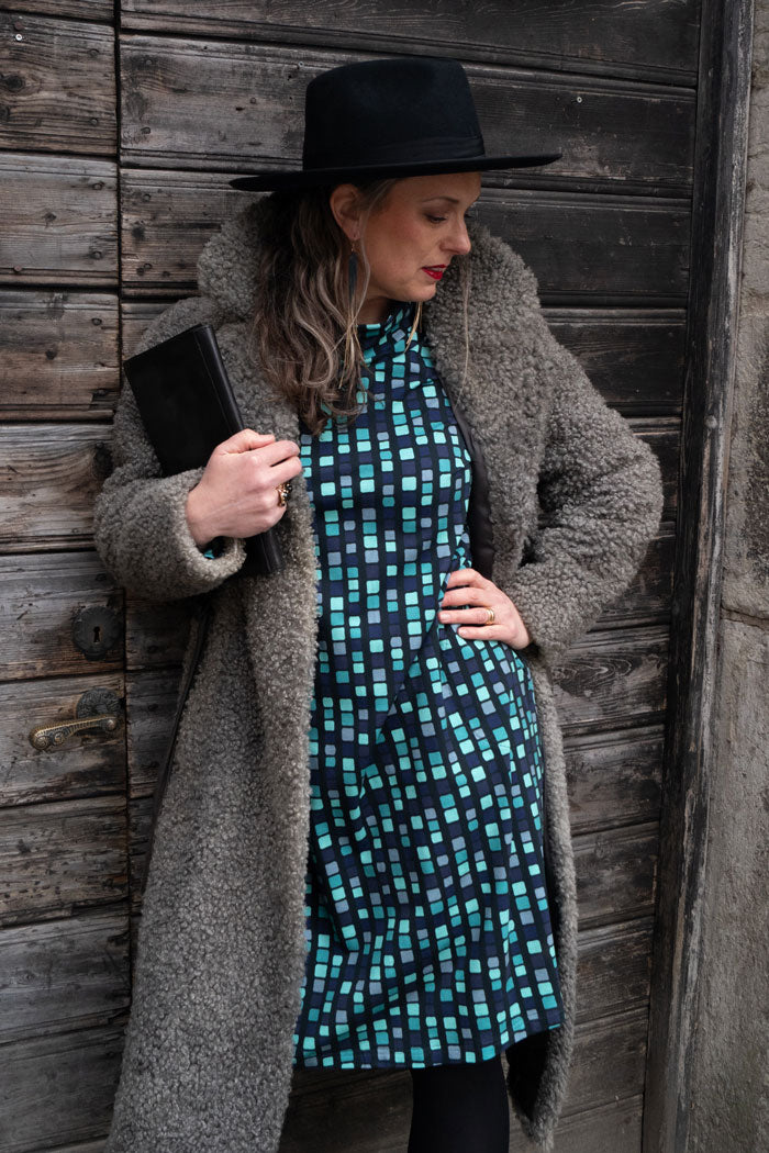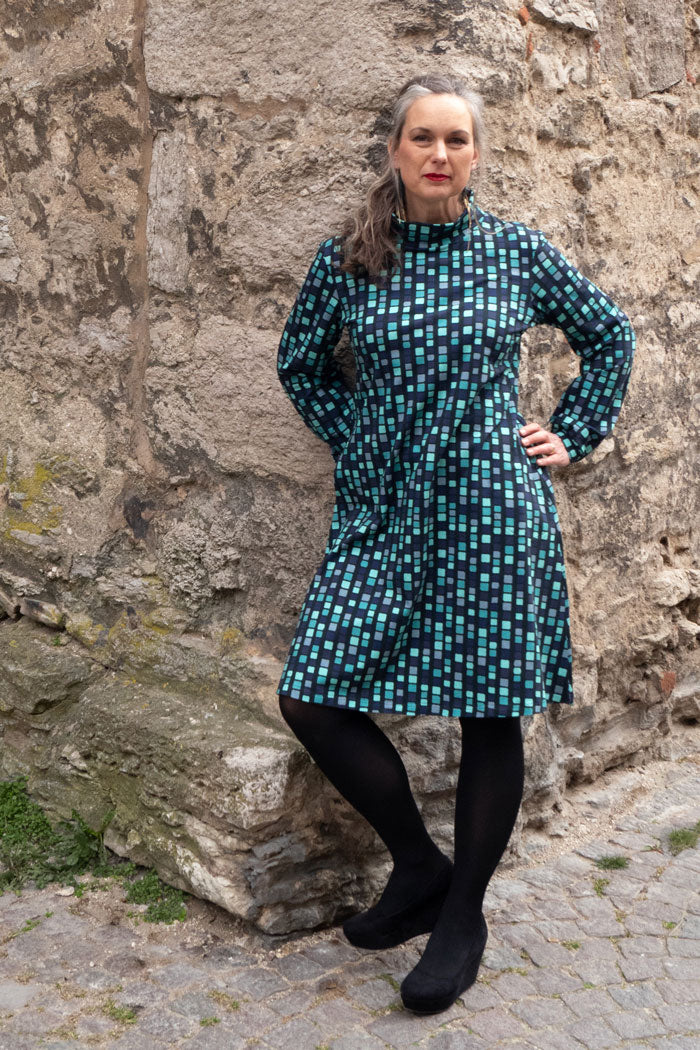 Medina är en löst och ledigt sittande klänning med skön ståkrage och långa ärmar, skapad för komfort och elegans. Den mjuka ekologiska bomullstrikån är dekorerad med ett lekfullt pärlmönster i blå toner, vilket ger plagget både karaktär och harmoni. Den avslappnade passformen gör den perfekt för vardag, och den tydliga designprofilen speglar vårt engagemang för slow fashion och svensk design. Medina är lika mycket ett medvetet val som ett stilval – ett plagg att trivas i under många säsonger.