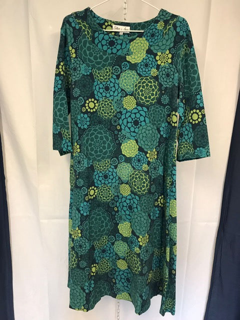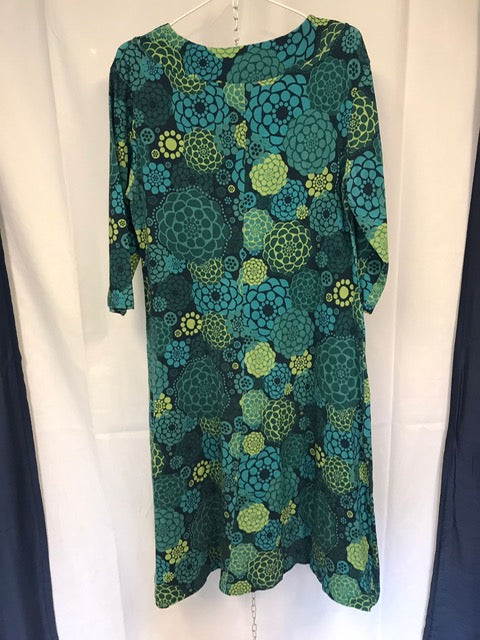Signe slutar strax nedanför knät på vaden och kragen är vändsydd. Längden gör att den funkar lika bra barbent som med strumpbyxor och leggings. Kjoldelen är lite lätt utställd för fint fall. Ärmlängden går ner under armbågen, en så kallad klassisk trekvartsärm. Passformen är tajt över byst och arm för att sen släppa och bli lösare över mage och rumpa. Halsringningen är rundhals som ligger på lagom avstånd från halsen, utan att ligga på men ändå täcka skönt.