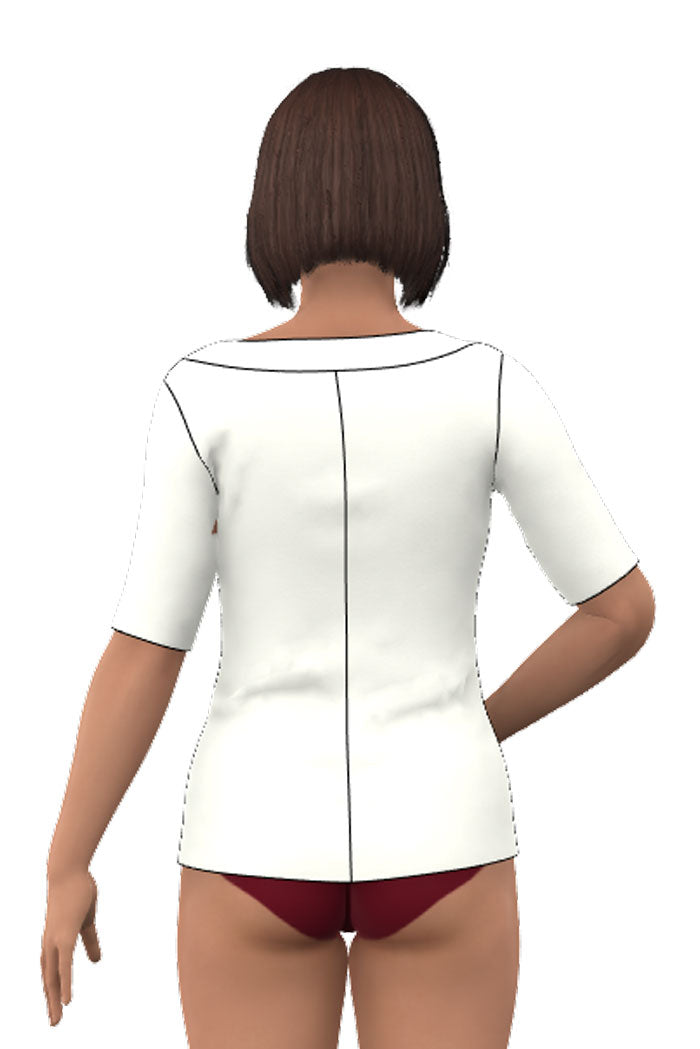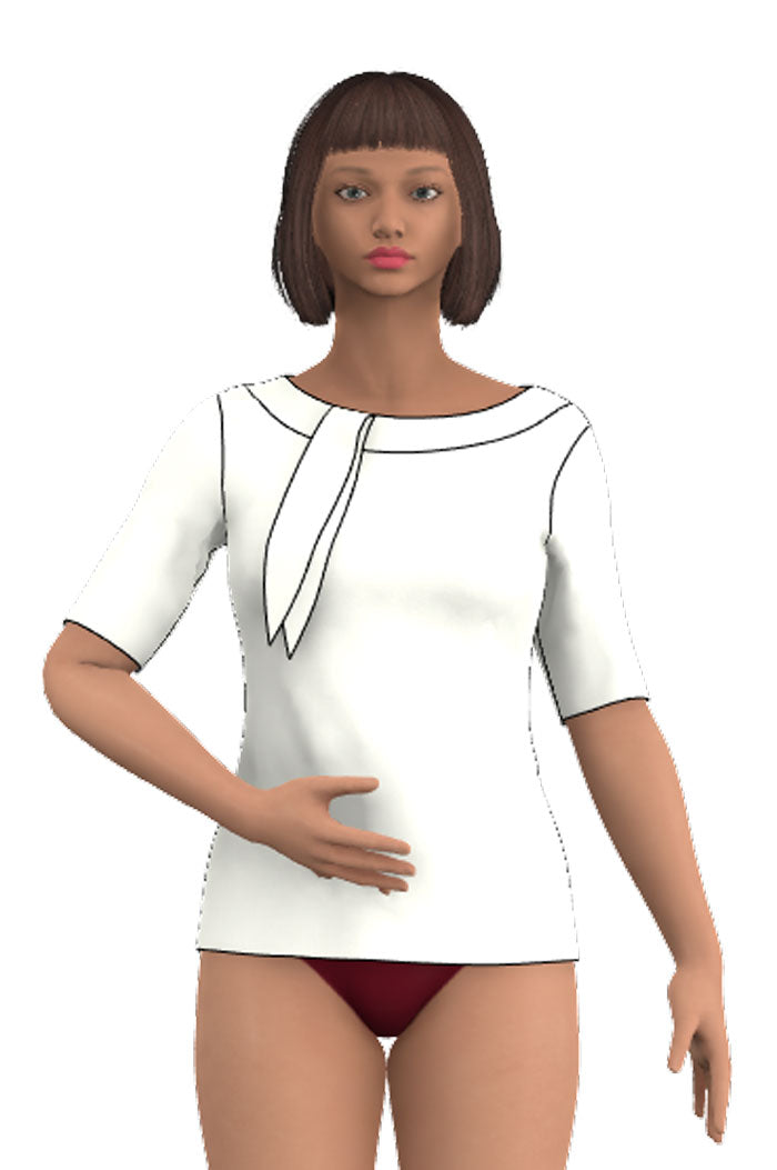 Passformen är tajt över byst och ärmar, men lite lösare över magen på ett klädsamt sätt. Ärmen går till armbågen.